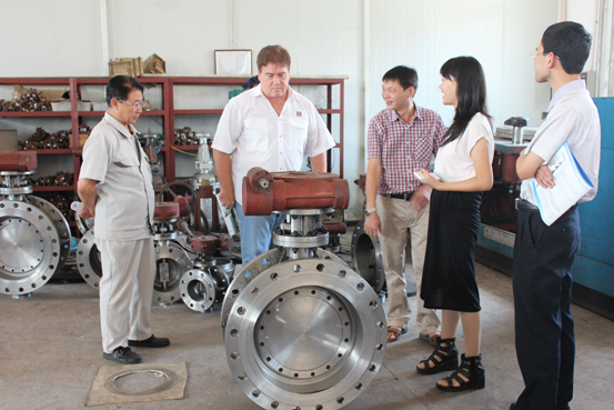 在卓金堤總經理的親自陪同下,首先實地考察了蝶閥生產車間及產品檢驗中心等。在整個參觀過程中卓總為客戶現場講解了公司整套生產及檢驗流程,并解答了客戶提出的技術細節問題。美國客人此行對我司蝶閥的生產流程、加工工藝、質量檢驗等各方面開展了考察和信息交流工作。期間,雙方就國內外的球閥生產現狀及發展做了相關討論。美國客人對自己公司的情況也作了介紹,雙方互相交流、溝通。